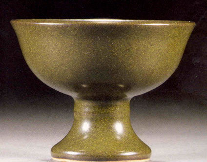 茶葉末:是我國古代鐵結(jié)晶釉中重要的品種之一,屬高溫黃釉,經(jīng)高溫還原焰燒成。釉呈失透的黃綠色,在暗綠的底色上閃出猶如茶葉細(xì)末的黃褐色細(xì)點,古樸清麗,耐人尋味。江蘇省揚(yáng)州市曾出土多件唐代茶葉末釉器,宋、明的產(chǎn)品亦屢有發(fā)現(xiàn)。清代前期的官窯,有意仿造明以前的茶葉末釉。