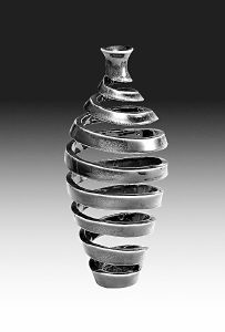 瓷雕作品《玄》(上圖)采用螺旋線結(jié)構(gòu),類似彈簧,高39厘米,腹部最寬直徑18厘米,中間無任何支撐物,所有的重力都靠底座支撐。
