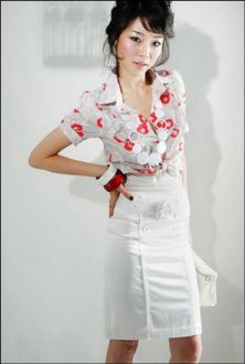 要領(lǐng):活潑的圖案,使普通款式的裙子變得吸引人,不過這種MINI的款式,不適合粗腿的MM.