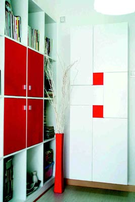 盡管色彩是實(shí)現(xiàn)這種風(fēng)格的先決因素,但為了不顯得空間過于繁復(fù)混亂,通常還是較少大面積地填充色塊,或者在同一空間里出現(xiàn)三種以上的顏色,利用家具和擺設(shè)用品的色彩點(diǎn)綴,是更有效的形式。從這個(gè)意義上看,也許在面積較小的居室中,更適合以明艷顏色讓人忽略空間的限制。
