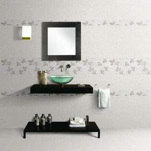 衛(wèi)浴的色調以黑白灰為主。墻面灰色的亞光瓷磚中間,因為貼了一道西德石雕花墻磚,使單調的墻變得豐富起來,在整體視覺上讓人感覺很舒服。