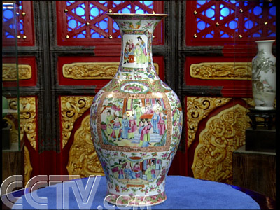 嘉賓:它的正確名稱應(yīng)當(dāng)叫廣彩,實(shí)際上如果要是詳細(xì)分的話,這里邊大部分是粉彩,但是它有幾種彩料也是琺瑯彩在琺瑯彩里邊原來用過,從這個(gè)乾隆以后在這個(gè)粉彩里邊,后來也應(yīng)用了一部分這個(gè)琺瑯彩的料。其實(shí)就是說正因?yàn)樗昧系膯栴}和琺瑯彩 粉彩都有一些相通的,相同的原料