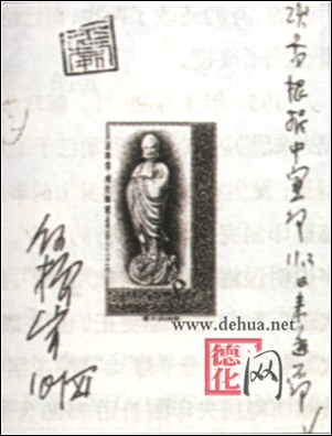 早在1951年10月,新中國在北京舉辦“偉大的祖國——建筑展覽會”、“偉大的祖國——古代藝術(shù)展覽會”和“少數(shù)民族文物展覽會”,國家郵政總局受到啟發(fā),即于當(dāng)年10月22日要求文化部文物局提供有關(guān)古代文物的圖片,作為郵票圖案資料。1951年12月8日,文物局將包括明代德化窯何朝宗“達(dá)摩瓷像”的古代文物照片30張連同目錄單一起函送郵政總局。