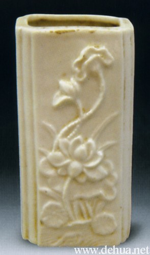 清中晚期 浮雕荷花菱形筆筒 高11厘米,長6厘米,寬5.5厘米