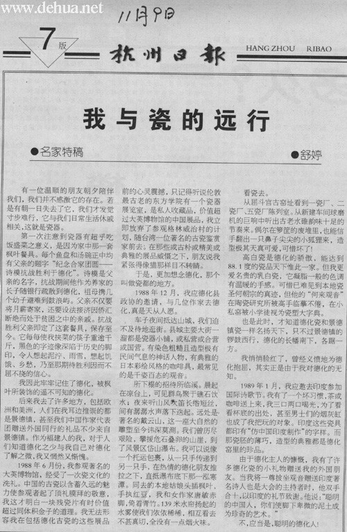 1988年12月,我應(yīng)德化縣政協(xié)的邀請(qǐng),與幾位作家去德化,真是天從人愿。