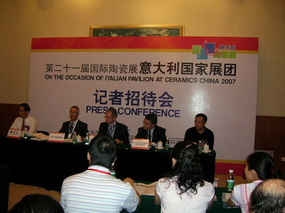 。玻睂弥袊鴩H陶瓷工業(yè)展覽會開幕之際,意大利國家展團(tuán)于5月30日上午假廣州市中國進(jìn)出口商品交易會(琶洲)展館國際會議中心舉辦“記者招待會”。意大利對外貿(mào)易委員會、意大利陶瓷機(jī)械及設(shè)備生產(chǎn)商協(xié)會代表同中國陶瓷工業(yè)協(xié)會副秘書長黃芯紅、佛山陶瓷行業(yè)協(xié)會秘書長尹虹等出席并回答了與會眾多記者的提問。