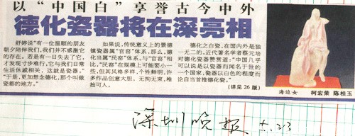 德化之白瓷,在國內(nèi)外是獨一無二的。近代著名學(xué)者蔡元培對德化瓷器贊賞道:“中國幾乎可以說是以瓷器而聞名于世的一個國家,瓷器以白色的程度而論自當(dāng)首推德化瓷。”