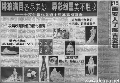 2002西安·德化名瓷展覽會(huì)揭幕前夕,記者就有關(guān)問(wèn)題專程采訪中共德化縣委許昆貞書(shū)記。