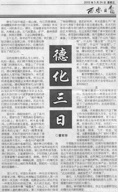 壬午五月,得勞動(dòng)節(jié)長假之暇,我們踏上了探訪德化古瓷都之路。盡管在德化停留的時(shí)間只是短短的3日,但德化的風(fēng)土人情及那濃濃的陶韻瓷香卻永遠(yuǎn)留在了我們心中。