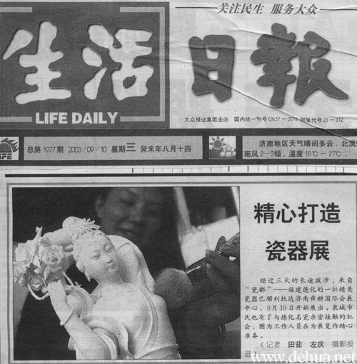 經(jīng)過(guò)三天的長(zhǎng)途跋涉,來(lái)自“瓷都”——福建德化的一批精美瓷囂已順利抵達(dá)濟(jì)南舜耕國(guó)際會(huì)展中心,9月10日開(kāi)始展出。泉城市民也有了與德化名瓷親密接觸的機(jī)會(huì),圖為工作人員在為展覽作精心準(zhǔn)備。(記者 田茹 左慶 攝影報(bào)道)