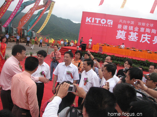 2007年6月15日,景德鎮(zhèn)金意陶陶瓷有限公司在景德鎮(zhèn)浮梁縣三龍鄉(xiāng)舉行了盛大的奠基儀式,江西省省長吳新雄、副省長洪禮和,景德鎮(zhèn)市市委、市政府,及浮梁縣縣委、縣政府領導等各級領導,中國建筑衛(wèi)生陶瓷協會會長丁衛(wèi)東,佛山市禪城區(qū)主要領導,佛山金意陶陶瓷有限公司董事長兼總經理何乾,佛山金意陶陶瓷有公司國際、國內代理商、供應商、湖北商會代表以及來自江西、廣東及國內知名的報紙、電視、雜志和網絡媒體朋友共500多人出席了這次盛大的奠基儀式。