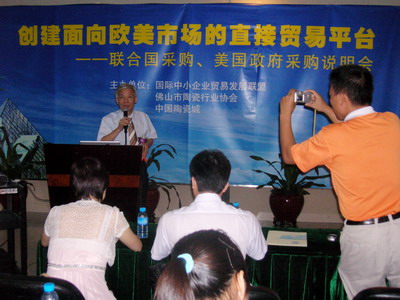 2007年8月6日下午,由國(guó)際中小企業(yè)貿(mào)易發(fā)展聯(lián)盟(ISMEUK)、佛山市陶瓷行業(yè)協(xié)會(huì)和中國(guó)陶瓷城主辦的“創(chuàng)建面向歐美市場(chǎng)的直接貿(mào)易平臺(tái)·聯(lián)合國(guó)、美國(guó)政府采購(gòu)說(shuō)明會(huì)”在廣東佛山市中國(guó)陶瓷城商務(wù)會(huì)議室舉行。