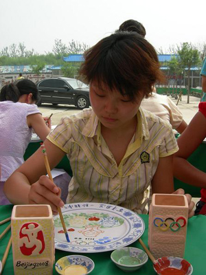千龍網(wǎng)北京8月8日訊 在北京喜迎奧運(yùn)倒計時一周年之際,今天上午,來自首都各界的女性知名人士、女書法家、女畫家、女企業(yè)家、三八紅旗手、各級婦聯(lián)干部等百余名婦女代表來到北京佐特陶瓷藝術(shù)活動中心,在磁盤上親手繪制“我心中的奧運(yùn)”,將自己對2008奧運(yùn)的祝福和期盼化為陶瓷上的精美圖案。
