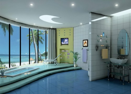 大衛(wèi)浴間面積至少應(yīng)該早10平米以上,有了這么大的衛(wèi)浴間,當(dāng)然應(yīng)該讓它的附加功能得到加強(qiáng),這時(shí)候的衛(wèi)浴間已經(jīng)不是單純意義上洗澡、方便的所在了。