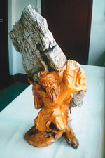 愚公移山:這尊“根抱石”的根藝作品,表現(xiàn)了雕刻藝術(shù)家巧妙地利用根與石的結(jié)構(gòu),加上獨(dú)特的構(gòu)思、夸張的手法和細(xì)膩的刀法,栩栩如生地再現(xiàn)了“愚公移山”艱苦創(chuàng)業(yè)的精神。體現(xiàn)了雕刻家變廢為寶,化腐朽為神奇的藝術(shù)創(chuàng)造性和天人合一的神韻。寓意深長(zhǎng)、令人感嘆,催人上進(jìn)!