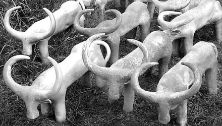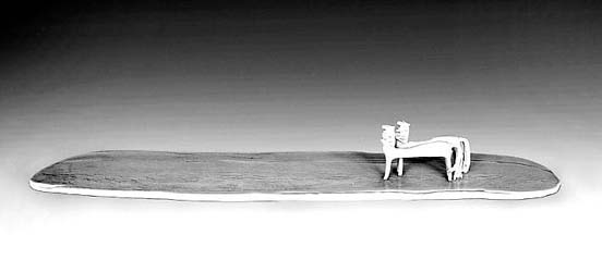 工業(yè)化以后,現(xiàn)代主義的國(guó)際風(fēng)格掃蕩了世界各民族建筑的多元化風(fēng)格,城市的一體化、建筑空間環(huán)境的一體化,使人們失去了地域性的文化感情,大城市里像水泥森林般聳立的樓群,給人們一種遠(yuǎn)離自然的窒息感。像這樣的生存空間,需要更多人性化的、情感性的和充滿大自然氣息的藝術(shù)作品來(lái)加以調(diào)和。呈現(xiàn)在上海觀眾面前的朱樂(lè)耕現(xiàn)代陶藝,給我們帶來(lái)了清新氣息。