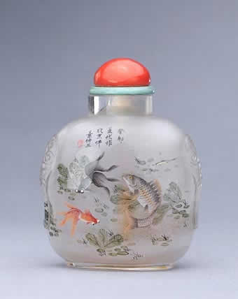 鼻煙壺為裝煙草的小器皿,蓋下木塞所附的牙匙,是用來舀取煙草。