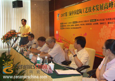 2007年8月29日,2007’第三屆中國建陶工藝技術(shù)發(fā)展高峰論壇在佛山新中源大酒店隆重舉行。