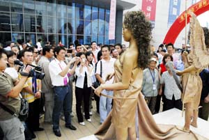 “去年我們是以淄博的陶瓷、蹴鞠、齊國故都、聊齋故里四張城市名片加上兩組前衛(wèi)的真人雕塑為素材做了六組真人雕塑。今年我們以世界風(fēng)情為主,古羅馬戰(zhàn)士、西班牙斗牛士、自由女神、希臘女神、哈姆雷特,加上時(shí)尚類的反恐精英,展現(xiàn)民族特色的老北京茶館群像等一共七組真人雕塑,表現(xiàn)淄博陶瓷正邁向國際化。”鄭小姐介紹說,真人雕塑將在本次陶博會(huì)上展示3天,每天上午和下午各兩個(gè)小時(shí)。