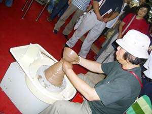晚報(bào)訊 (記者侯林 高金霞 譚壯飛)真人雕塑、瓷笛、刻瓷表演、陶瓷飲水機(jī)……陶博會(huì)一開幕就頻現(xiàn)亮點(diǎn),讓海內(nèi)外與會(huì)者大飽眼福。昨天上午8點(diǎn)半,記者來到了淄博國際會(huì)展中心,許多市民早早地排起了長(zhǎng)隊(duì),為的是領(lǐng)取參觀證先睹為快。參會(huì)者豎起了大姆指:今年的陶博會(huì)真好看!