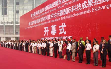 一年一度的陶瓷博覽會是展示淄博陶瓷產品形象,開拓市場、聯(lián)絡國際客商的重要紐帶,也是提升陶瓷產業(yè),傳承陶瓷歷史文化的一次盛會。9月6,第七屆中國(淄博)國際陶瓷博覽會暨世界陶瓷采購大會·第六屆中國(淄博)新材料技術論壇暨國際科技成果招商洽談會在淄博國際會展中心隆重舉行。全國政協(xié)副主席李蒙、中國工程院副院長沈國舫、山東省副省長才利民、省政協(xié)副主席齊乃貴;市委書記、市人大常委會主任劉慧晏、市委副書記、市長周清利、市人大常委會黨組書記、副主任常志鈞、市委副書記侯法生、市委特邀顧問王學剛、王行宏;市領導陳家金、韓世幸、王頂岐、周連華、宋軍繼、趙啟全、郭利民、陳勇、魏艷菊出席開幕式。姚福生等15位中國工程院院士,田波、都有為等中國科學院院士,幾內亞、比利時、波黑、孟加拉國等國家的駐華大使和使節(jié);美國、英國、澳大利亞、韓國、日本、印度、俄羅斯等20多個國家和地區(qū)的外賓、外商代表以及國內有關省市的客商等在主席臺就位。市質監(jiān)局領導及直屬單位負責人等20余人應邀參加開幕式。全國政協(xié)副主席李蒙宣布陶博會開幕,市人大常委會主任、市委書記劉慧晏等領導為開幕式剪彩,市委副書記、市長周清利代表市委、市政府致詞。開幕式結束后與會領導和嘉賓興致勃勃地參觀了國際工業(yè)陶瓷展覽會等現(xiàn)場。