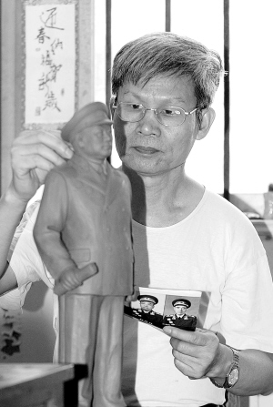 對(duì)于大家都在夸“‘賀龍’拿煙斗的姿勢(shì)特像”,霍家榮微笑地說(shuō),為了更深入地了解這兩位元帥,他專門借來(lái)兩本厚厚的元帥人物傳記,通過(guò)閱讀書(shū)籍,他了解到賀龍?jiān)獛洷容^喜歡用煙斗,因而就在“賀龍”的手上專門添加了一個(gè)煙斗。 “徐向前是山西人,解放戰(zhàn)爭(zhēng)時(shí)期的他與授勛時(shí)的外貌變化不是太大。眉毛、眼睛、鼻子、嘴唇以及臉形都是徐帥特明顯的地方。塑造好人物的主要面貌特征,這個(gè)創(chuàng)作能算是成功了一半。”霍家榮說(shuō)。