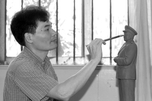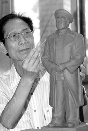 為此,劉炳曾到舊貨市場(chǎng)“淘”有關(guān)十大元帥的畫(huà)冊(cè),還專門跑到一家音像店買了一張反映十大元帥的新版電影光碟。但是,這張光碟主要反映元帥們的早期形象,這與他們此次創(chuàng)作所選的十大元帥受勛時(shí)的面貌有很大的不同。憑著有限的幾張照片,他進(jìn)行著艱難的創(chuàng)作。熟悉劉炳的人都知道,他的作品以刻畫(huà)細(xì)膩著稱。如果一件再好的作品他感覺(jué)有一點(diǎn)瑕疵,他都會(huì)較真起來(lái),輕者重改,重則打爛重做。因此,他每年都要打爛許多自己不滿意的作品。這次創(chuàng)作也不例外。前段時(shí)間,他感覺(jué)“聶帥”面部特征不突出,便毫不猶豫地精心制作了另一個(gè)頭像,還專門做了一個(gè)“聶帥”頭像的石膏模。他說(shuō),塑像最關(guān)鍵的部分就是對(duì)面部的塑造,萬(wàn)一這次修改我又不如意,我有可能打爛第二個(gè)頭像,然后用模子重新做一個(gè)新的進(jìn)行修改創(chuàng)作。