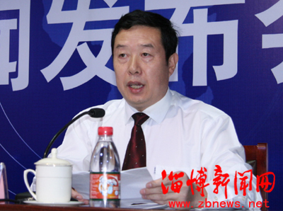 淄博市委宣傳部常務(wù)副部長、市社科聯(lián)黨組書記趙新法主持發(fā)布會。