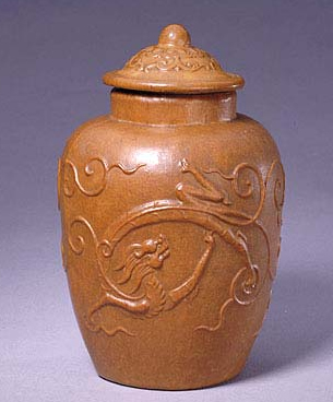 匏制蕃蓮螭紋蓋罐,通高15.3cm,口徑5.8cm,底徑6.7cm。