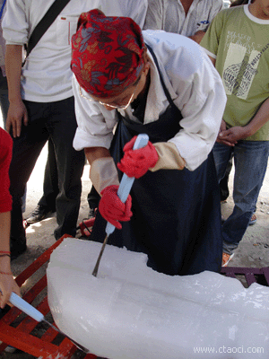 首屆中國(莆田)海峽工藝品博覽會臺灣藝術(shù)家吳進(jìn)生現(xiàn)場表演冰雕