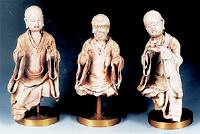 當(dāng)欣賞這組羅漢像時(shí),可感到有一種粗獷、蒼勁、人格化的古拙美。按一般所見(jiàn)宋代瓷塑佛像,衣服均上青白釉,而頭、頸、手均為素胎,但此三尊羅漢像,衣袖內(nèi)可見(jiàn)青白釉,而衣袍正面卻為素胎,頭、手也無(wú)釉,細(xì)辨表面又不似脫釉(一般影青瓷青白釉不會(huì)脫釉),是反瓷,還是當(dāng)時(shí)未上釉的殘次品,待考。