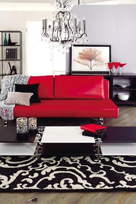 很少人會選擇紅色作為家居主色彩,的確,搶眼的紅色用得不好,將會給人造成巨大的壓力,并給人“俗艷”之感,但是,今年秋冬,正紅色卻成為本季時尚舞臺的主打色。在嚴寒的冬季,巧妙地運用正紅色的熱烈和熱情,不僅可以提高室內的溫度,而且可以提升家居的情調。 搶眼的紅色不適宜做大面積的底色,但非常適宜做點綴,寬敞的客廳里,可以擺放一套紅色的布藝沙發(fā);舒適的臥室,添一盞紅色的臺燈;溫馨的餐桌上,放兩個紅色的燭臺;單調的墻面上,掛一款紅色鐘表或者小畫;甚至居室的角落,都可以點綴一個紅色的垃圾桶。