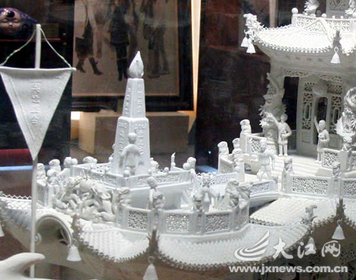 本報(bào)景德鎮(zhèn)訊 記者王景萍攝影報(bào)道:在中國申奧成功后,景德鎮(zhèn)市的工藝美術(shù)師劉松林耗時(shí)6年,制作了一艘目前世界上最大的瓷雕奧運(yùn)龍船。21日,劉松林表示,自己想把這艘龍船獻(xiàn)給奧組委。