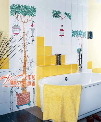 面積稍小的衛(wèi)浴間,由于空間比較局促,無法安排下淋浴房或浴缸,一個(gè)簡(jiǎn)單的淋浴花灑即構(gòu)成淋浴區(qū),即便如此,這個(gè)簡(jiǎn)單的小淋浴區(qū)也同樣可以使用彩磚+花磚的辦法,亮麗起來。價(jià)格見店內(nèi) 意德法家 亮彩物品 打造炫彩衛(wèi)浴間