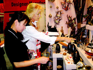 題圖:展會(huì)上,我省的工藝品吸引國(guó)際買家眼球,有的客商當(dāng)場(chǎng)下單。