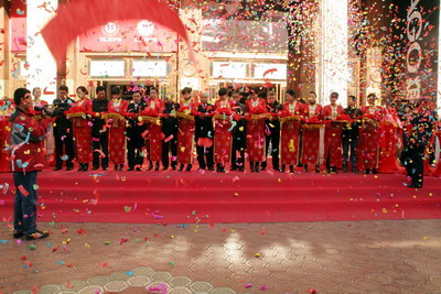 在開業(yè)儀式中,主會場正面矗起的一座20米紅門、一對紅燈籠柱、側(cè)面矗起的二座18米彩虹門、二對燈籠柱以及三座高大鮮艷的彩虹門宛如一條絢麗的彩虹,宏偉壯觀。此外,在會場周圍停放10臺加長林肯車隊(duì),氣勢磅礴、壯麗巍然,車體上方掛有條幅,車體顏色一致就像路標(biāo),不但為參加典禮的領(lǐng)導(dǎo)與來賓指引方向,而且讓活動整體有序。整個開業(yè)儀式豐富、生動、多彩,現(xiàn)場在噴射出五彩繽紛的彩片而產(chǎn)生從天而降的完美畫面下,獨(dú)樹一具的開業(yè)氣氛吸引了近千人前來觀摩及采購,同時,也以隆重?zé)崃、格調(diào)高雅、氣勢非凡的開業(yè)儀式展現(xiàn)益高公司的雄厚實(shí)力,提升了EAGO(益高)在哈爾濱市及黑龍江省的品牌知名度,并快速占領(lǐng)市場打開全方位的銷售局面,將“中華第一店”做到名副其實(shí),為黑龍江經(jīng)濟(jì)騰飛做出更大貢獻(xiàn)打下了良好的基礎(chǔ)。
