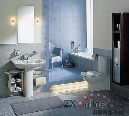 藍色和白色都是讓人感覺平靜的色調,而瓷磚上少數的花紋圖案使得浴室在這平靜中又不乏俏皮靈動。局部配以經典的灰色也使得浴室總體上更彰顯時尚感;盍、時尚、清新、浪漫集于一身,看看有誰能對這款浴室不心動?單單是看著,不用碰到水就已經倍感清涼。