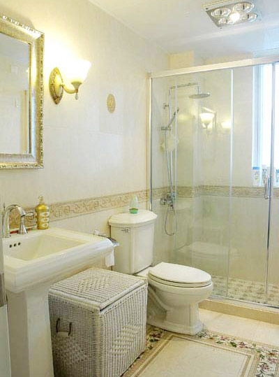 在小浴室選擇潔具、配件、裝飾品、以及其它材料的時(shí)候,必須要充分考慮尺寸大小、顏色、圖案或質(zhì)地的統(tǒng)一性。這樣的話,不管浴室風(fēng)格是怎樣的特定,抑或是怎樣的組合,都能保持一種強(qiáng)有力的風(fēng)格連貫性。還必須從實(shí)用的角度出,小地毯、舒適考究的椅子、精致的墻面以及垂簾固然可以創(chuàng)造傳統(tǒng)的浪漫情調(diào)。