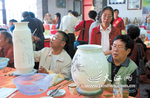 陶藝家現(xiàn)場(chǎng)交流技藝。