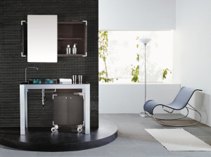 一提到浴室家具,人們總是聯(lián)想到寬大的衛(wèi)浴用品和古典的木質梳妝鏡,其實不然,越來越強調實用性的浴室柜尺寸并不大,而且完全可以將浴室中常用的瑣碎之物——洗面乳、牙缸、剃須刀等巧妙地隱藏其中,絕對是小浴室中保持整潔的超強收納能手。