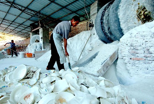 德化縣一陶瓷企業(yè)工人在對(duì)廢瓷品進(jìn)行碾磨回收再利用(11月15日攝)。 素有“瓷都”之稱的福建省德化縣現(xiàn)有各類陶瓷企業(yè)1000多家,陶瓷生產(chǎn)成了這個(gè)縣的支柱產(chǎn)業(yè),而由此帶來(lái)的環(huán)境污染和資源緊張等問(wèn)題也成了制約當(dāng)?shù)亟?jīng)濟(jì)發(fā)展的絆腳石。近年來(lái),當(dāng)?shù)卣μ剿?ldquo;節(jié)能減排,資源再生,發(fā)展循環(huán)經(jīng)濟(jì)”的新路子,采取回收利用廢瓷品、廢泥料、廢水、窯爐余熱等措施,進(jìn)行資源的再生循環(huán)使用,有效地保護(hù)了資源和環(huán)境。新華社記者 張國(guó)俊 攝