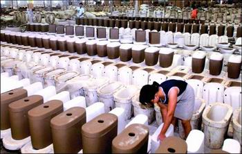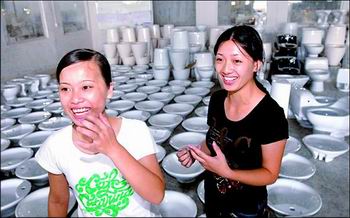潮州新春天陶瓷公司員工對(duì)即將外銷(xiāo)的陶瓷衛(wèi)生潔具進(jìn)行檢查。潮州是全國(guó)最大的衛(wèi)生潔具生產(chǎn)基地,產(chǎn)品的外銷(xiāo)量在國(guó)內(nèi)同行中名列前茅,效益相當(dāng)可觀。