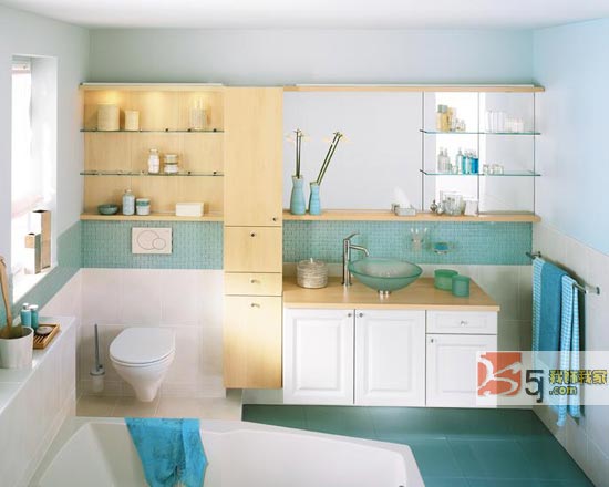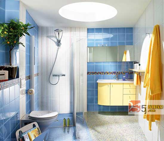 藍色是比較中性的顏色,在夏天讓人感覺清涼,在秋冬也不會讓人感覺冰冷,在浴室里適當(dāng)?shù)奶砑铀{色元素,會給人帶來身心自由的快樂感覺。