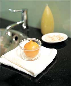 值得借鑒的地方:這個衛(wèi)生間的細節(jié)處理得很好,比如墻面用于放雜物的架子,由玻璃制成,和玻璃墻面很和諧;不銹鋼材質(zhì)的花瓶,既防水,也符合整個環(huán)境的風格。