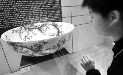 11月25日,一位小朋友被一個標價60萬元的薄胎陶瓷大碗所吸引。