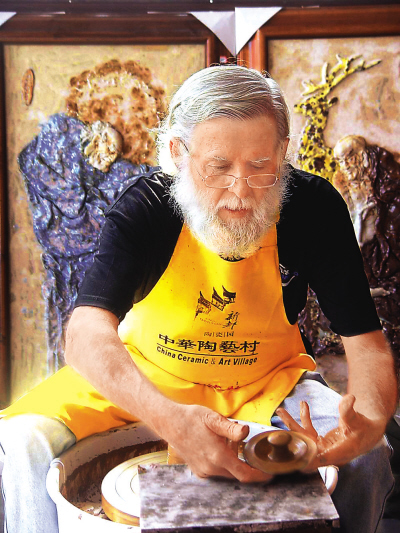 ▲澳大利亞著名陶藝大師凱文·格里雷在精心創(chuàng)作。