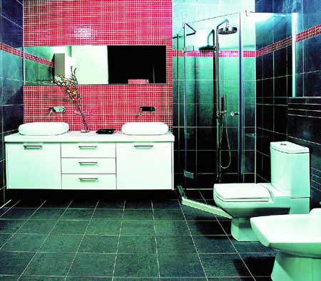 瓷磚拼貼方法的變化多端使浴室也呈現(xiàn)多樣的變幻,色彩的配合運用、形狀的多樣搭配、裝飾線條的精心設計都賦予浴室全新的感覺。