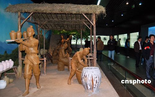圖為展區(qū)里生動(dòng)再現(xiàn)了宋代民間制陶的方法。