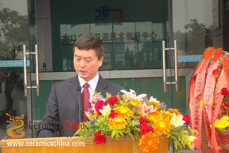 儀式由水口鎮(zhèn)鎮(zhèn)長許永輝主持。開平市副市長陳靖,水口水暖衛(wèi)浴行業(yè)商會會長、廣東華藝衛(wèi)浴實業(yè)有限公司董事長馮松展,廣東省科技廳發(fā)展計劃處處長姚化榮,中國建筑衛(wèi)生陶瓷協(xié)會秘書長繆斌,開平市市長吳平超等領導先后在儀式上致詞。