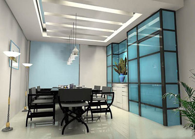 很多小戶型住房都采用客廳或門廳兼做餐廳的形式,在這種格局下,餐區(qū)的位置以鄰接廚房并靠近客廳最為適當,它可以縮短膳食供應和就座進餐的走動線路,同時也可避免菜湯、食物弄臟地板。餐廳與客廳之間可采用靈活處理,但需要注意與客廳在格調上保持協(xié)調統(tǒng)一,并且不妨礙通行。